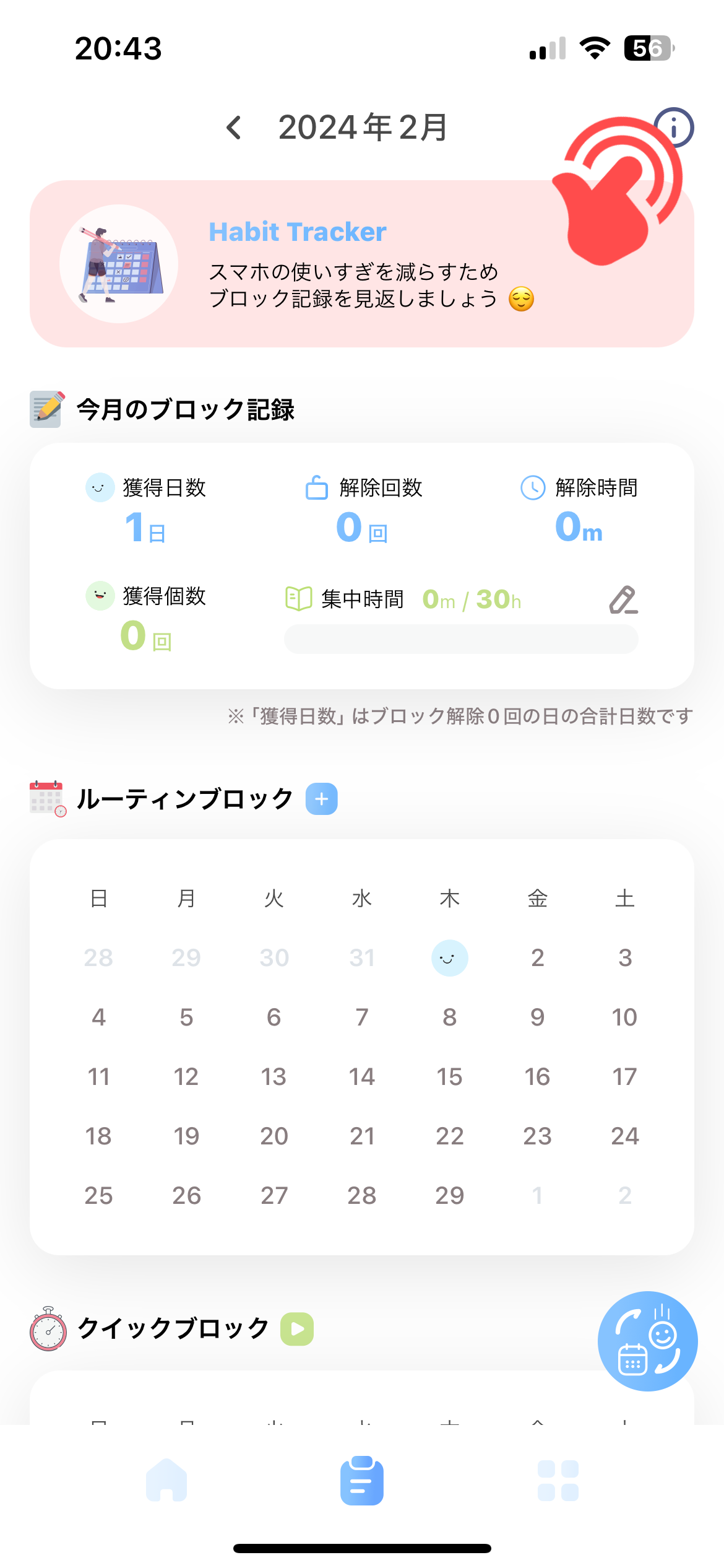 - クイックブロック:設定した集中時間に応じて、異なる大きさの「ブロッキン」を獲得。集中時間が長ければ長いほど、獲得する「ブロッキン」も大きくなります。